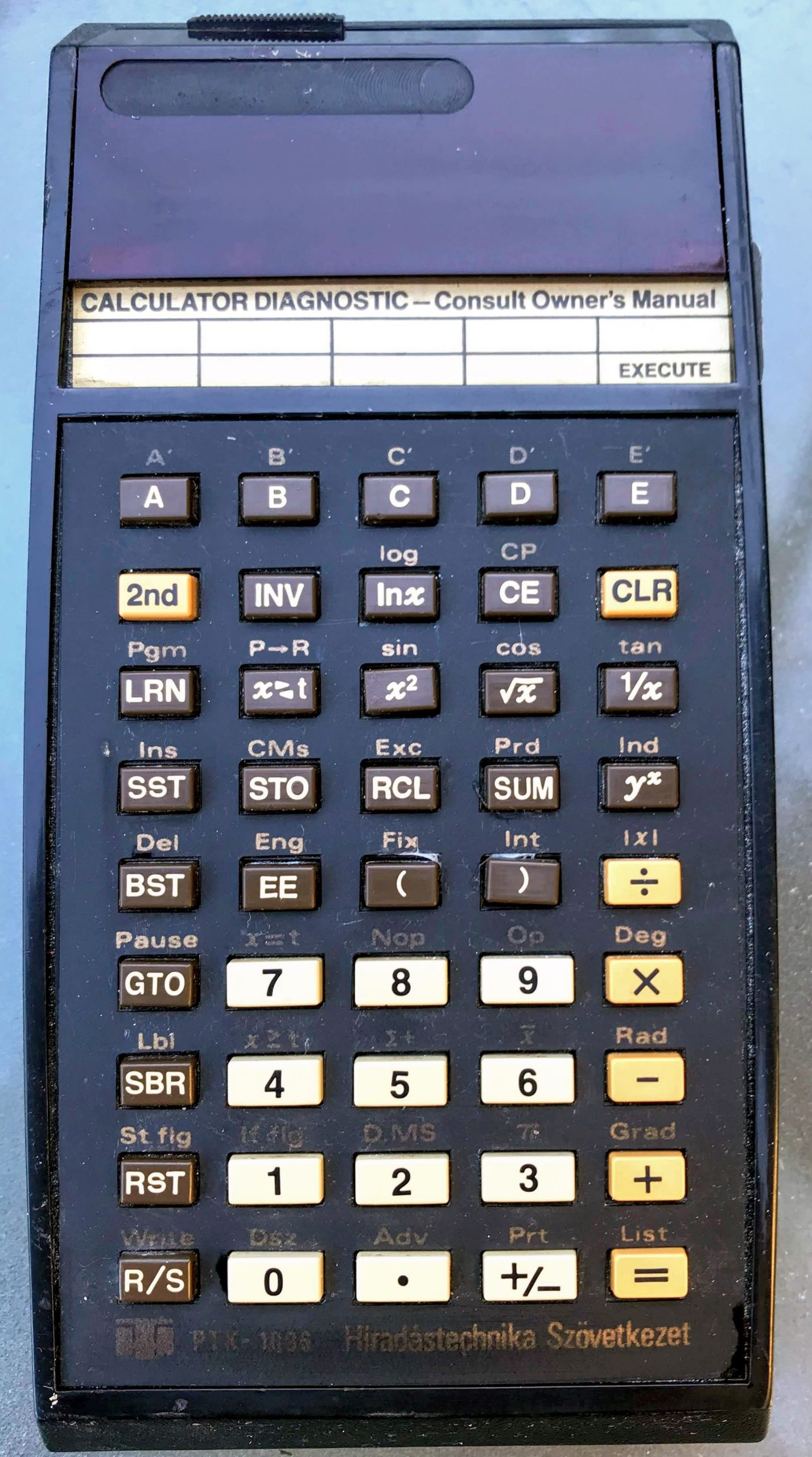 E számológép a legkorszerűbb számológéptípusa a Híradástechnika Szövetkezetnek mely mint zsebszámológép, akkumulátorról üzemeltethető 24800 Ft-os fogyasztói áron forgalomba hozott programozható tudományos zsebszámológép.